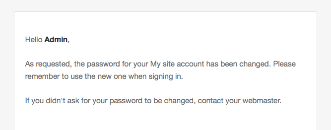 To mitigate social engineering attacks, a password change notification is now sent whenever an admin account password is updated. This gives your users the best possible chance of reacting quickly in the unlikely event that an attacker gains access to their account and attempts to lock them out.